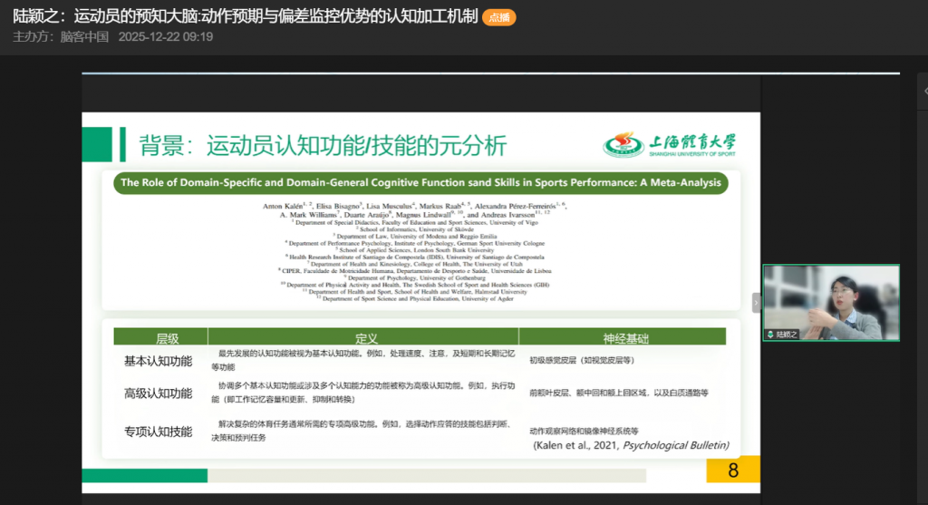 陆颖之——运动员的预知大脑:动作预期与偏差监控优势的认知加工机制 | 【脑客中国·科研】第208位讲者